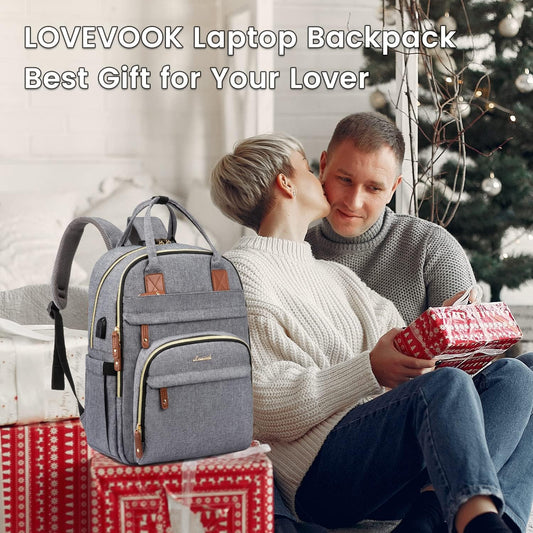 Laptop Backpack for Women & Men, Unisex Travel Anti-Theft Work Business Computer College Bag Purse, Casual Hiking Outdoor Carry on Daypack with Lock, Fits 15.6 Inch Laptop, Grey