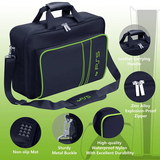 Carrying Case for PS5, Bag for Ps5,Bag for PS5 Accessories,Included Gamepad Controller Protective Box(Black-Green)